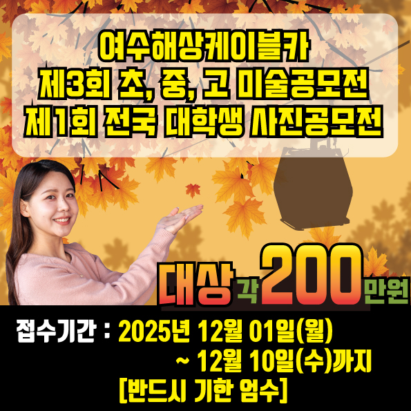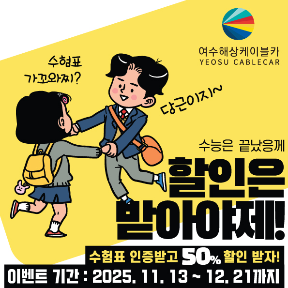 05 / 05 공지사항 이벤트 포토갤러리 사진미술공모전 2025-11-03 수능이벤트 2025-11-03 케이블카 할로윈 위크 이벤트 안내 2025-10-21 케이블카 타고 보름달에 소원을 빌어보세요~ 2025-10-21